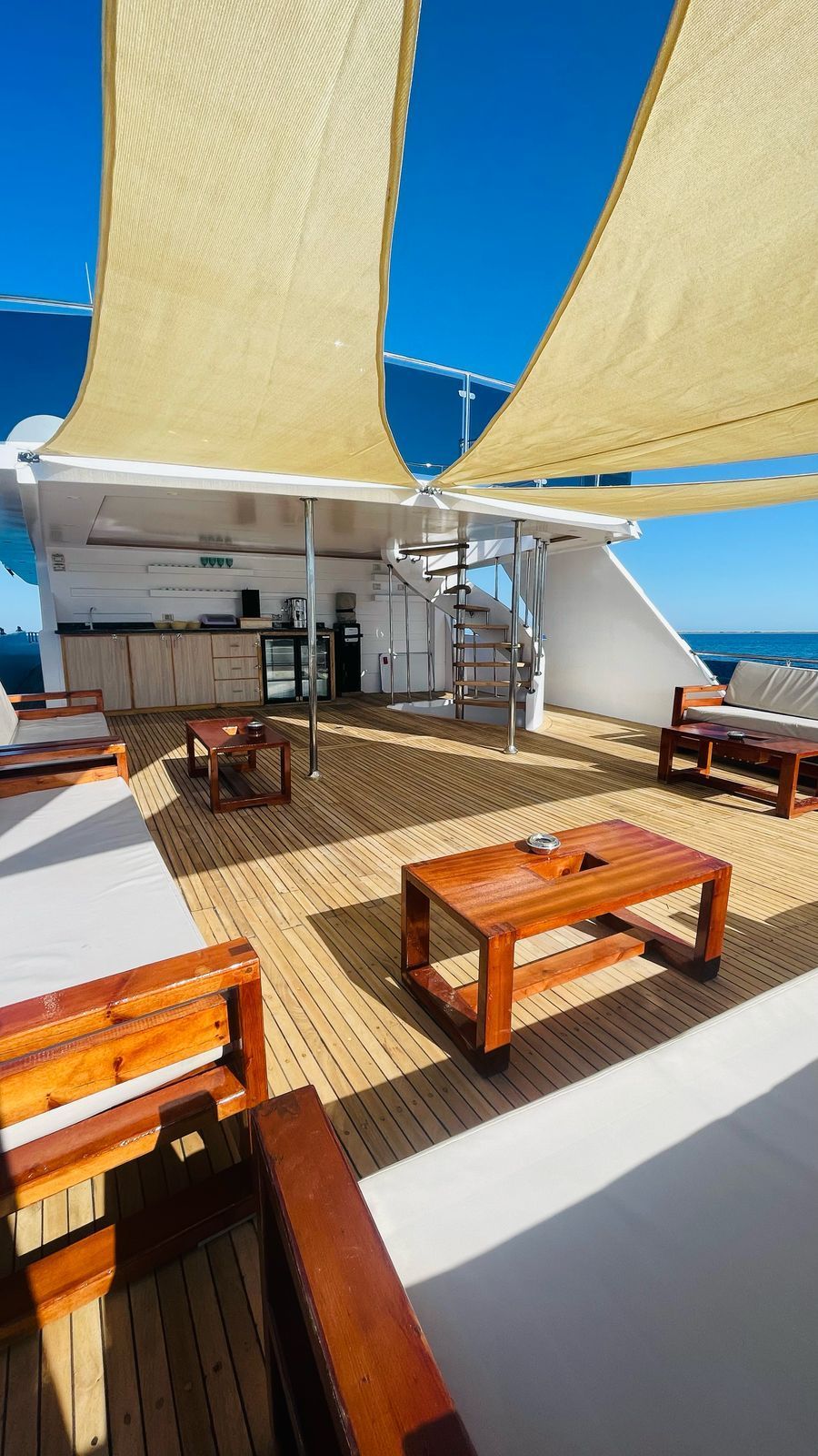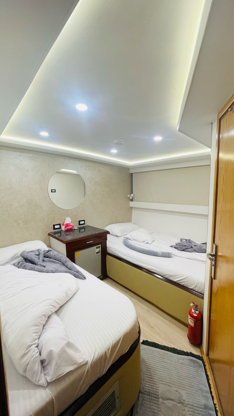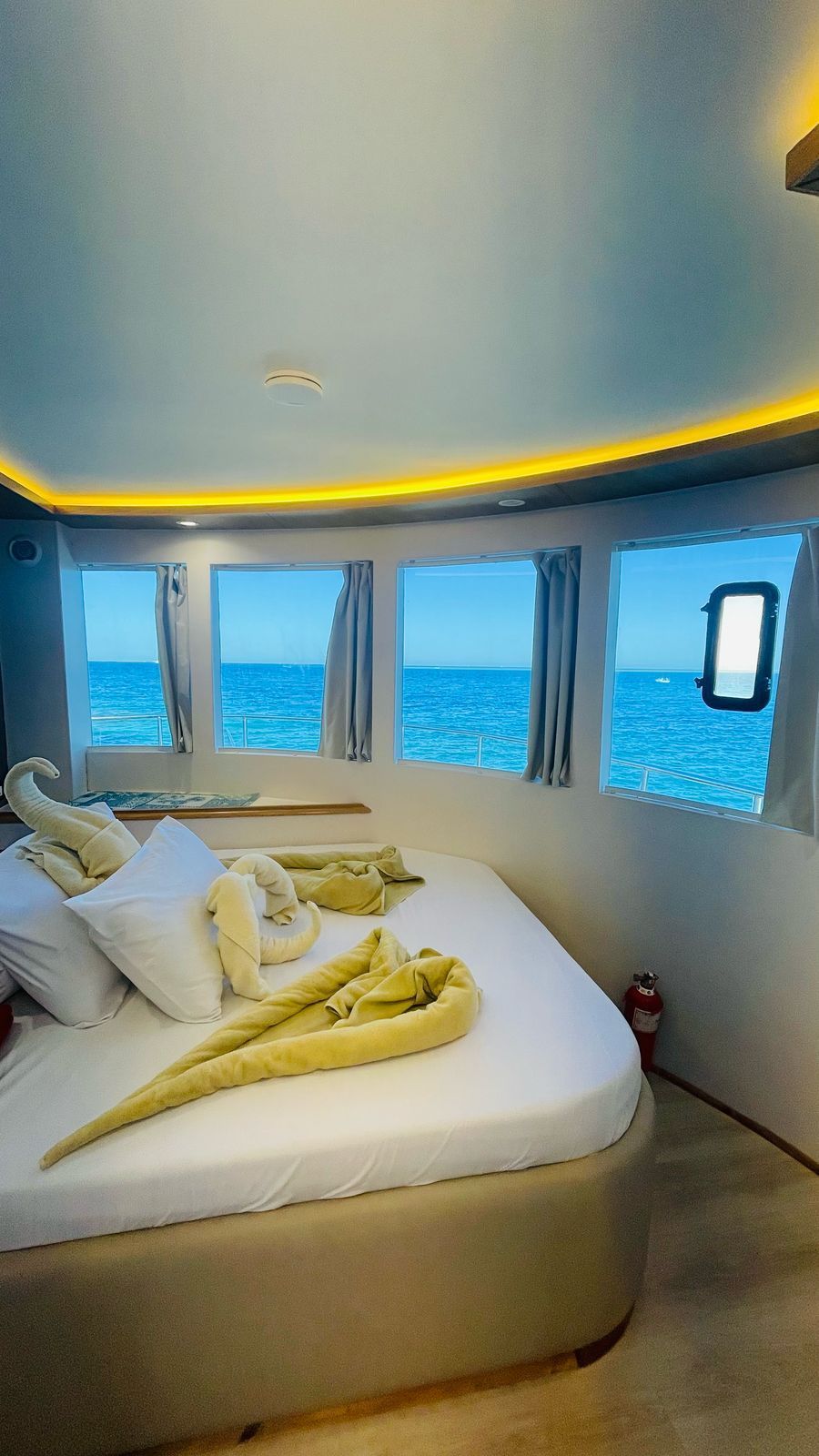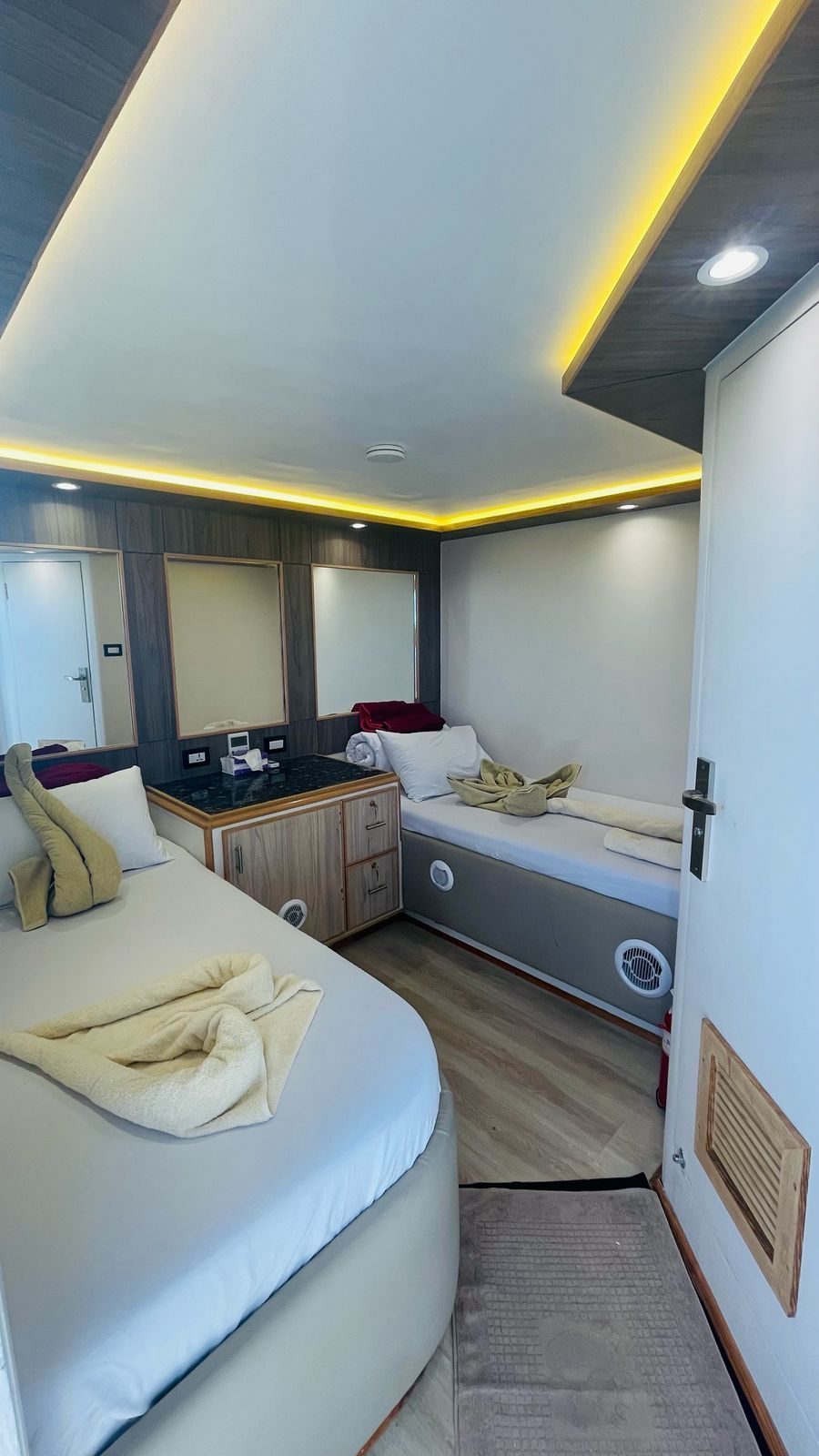 Unser Boot ist 34 m lang und 7,5 m breit und bietet 12 Kabinen für 24 Gäste.